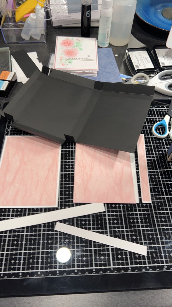 • For the rest of the directions I highly recommend following the link to Gina’s video. I found that a visual guide is much easier to follow for the cutting part of this project!! I like to use a 1//8” double sided tape for putting the boxes together, tho it can be done with what ever adhesive you are most comfortable with.