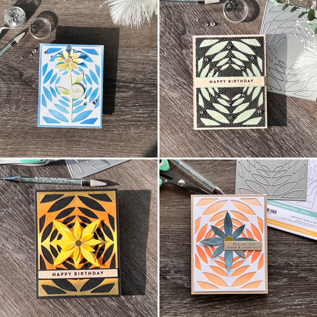 I was sent this amazing Nesting Leaves Plate in advance to work with and create some projects! So far I have four finished cards but more ideas are in the works. The video link below shows step by step the creation of two of the cards from the set of four
