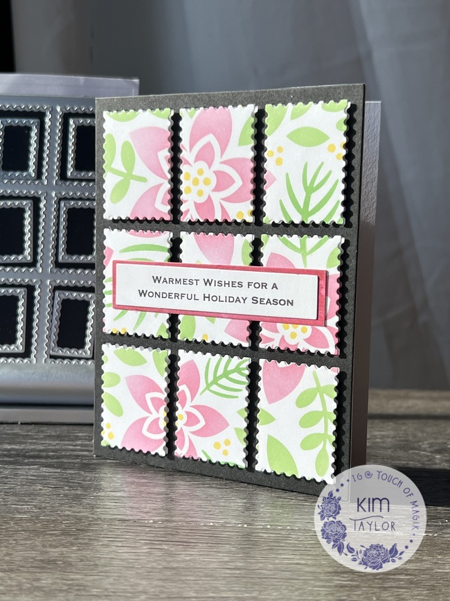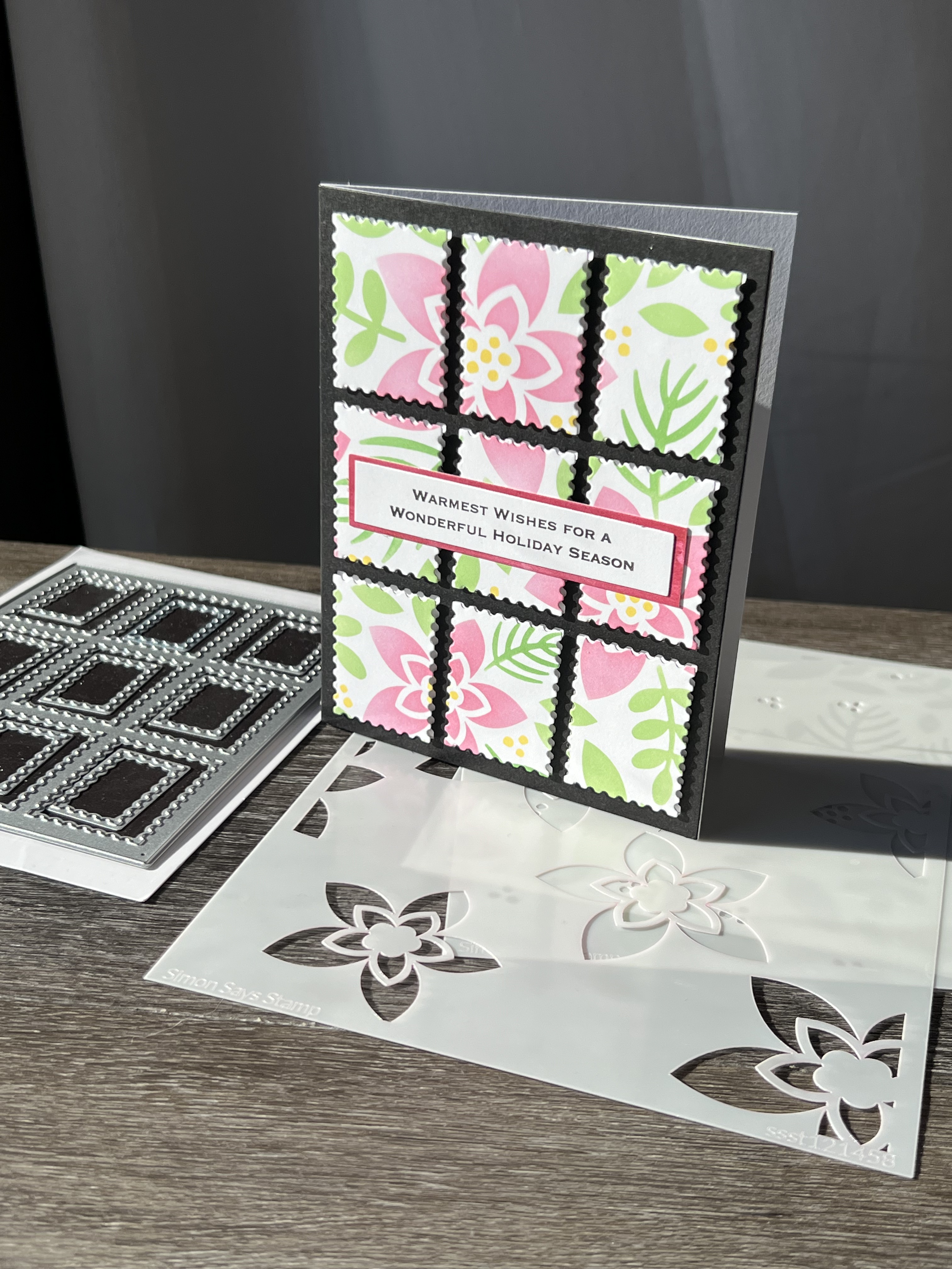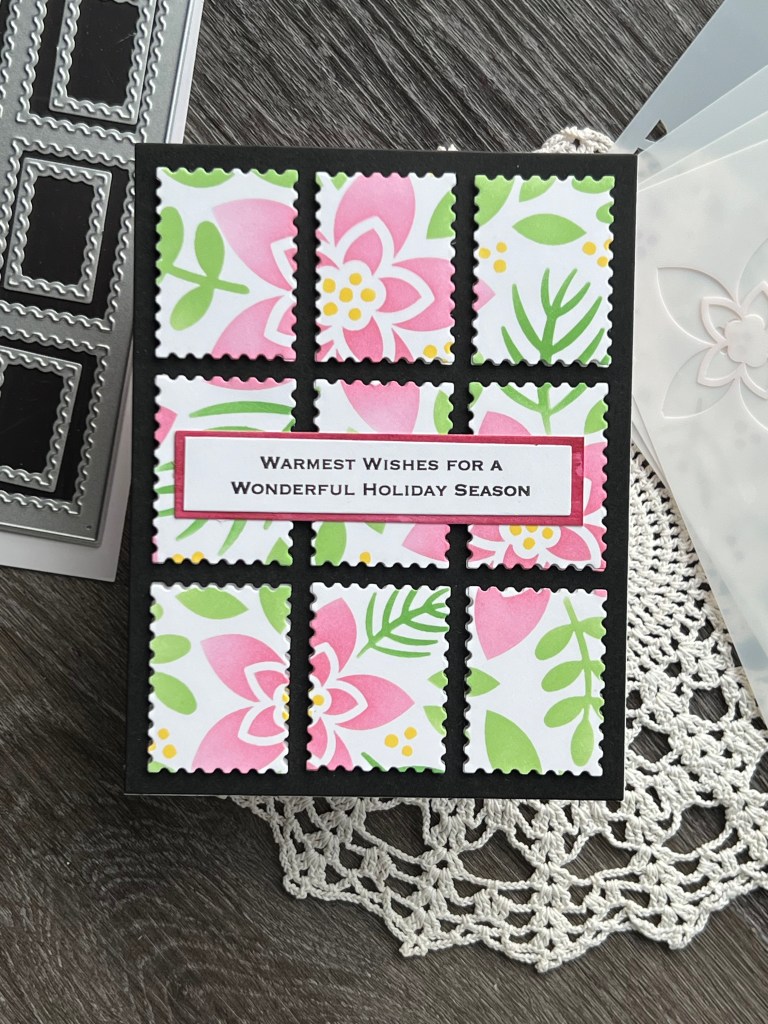 This may be my favourite card I made for this new release. I received the Postage Collage Cover Dies and I paired it with the Winter Floral Layering Stencil and the Inside Holiday Greetings stamp set. I used the new Reds collection of Rhuharb, Apple & Cranberry and Limelicious & Pearfection I popped up all the floral pieces on foam tape for dimension & impact. More details and links on my blog a bit later today !