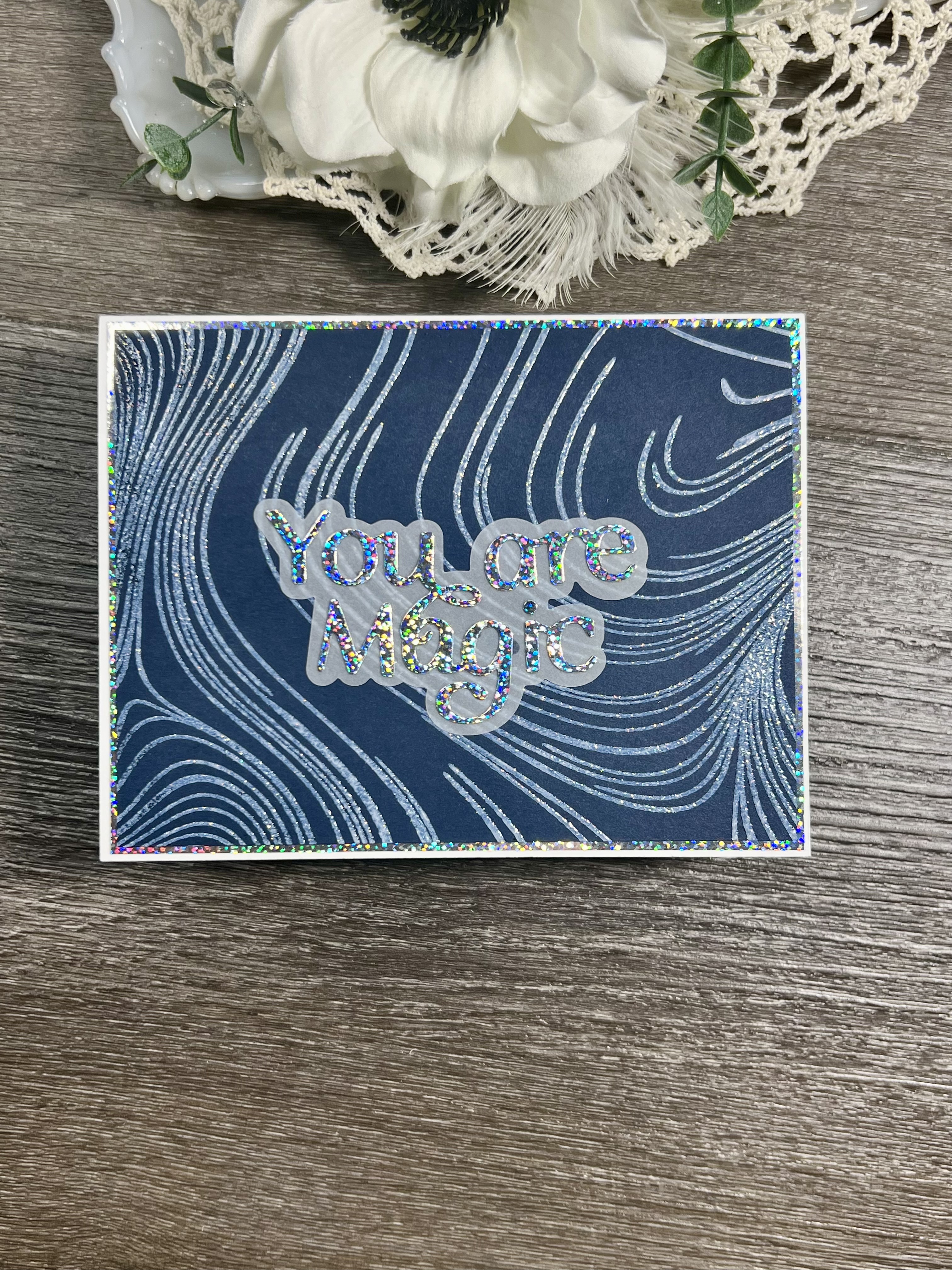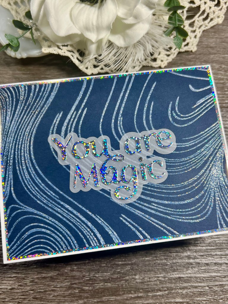 The little extra something something for this card is the Holographic paper I used as a mating layer and for the You are Magic. I backed it with a vellum shadow layer. I really felt it didn’t need anything else and the amount of sparkle and shine was just about right!
