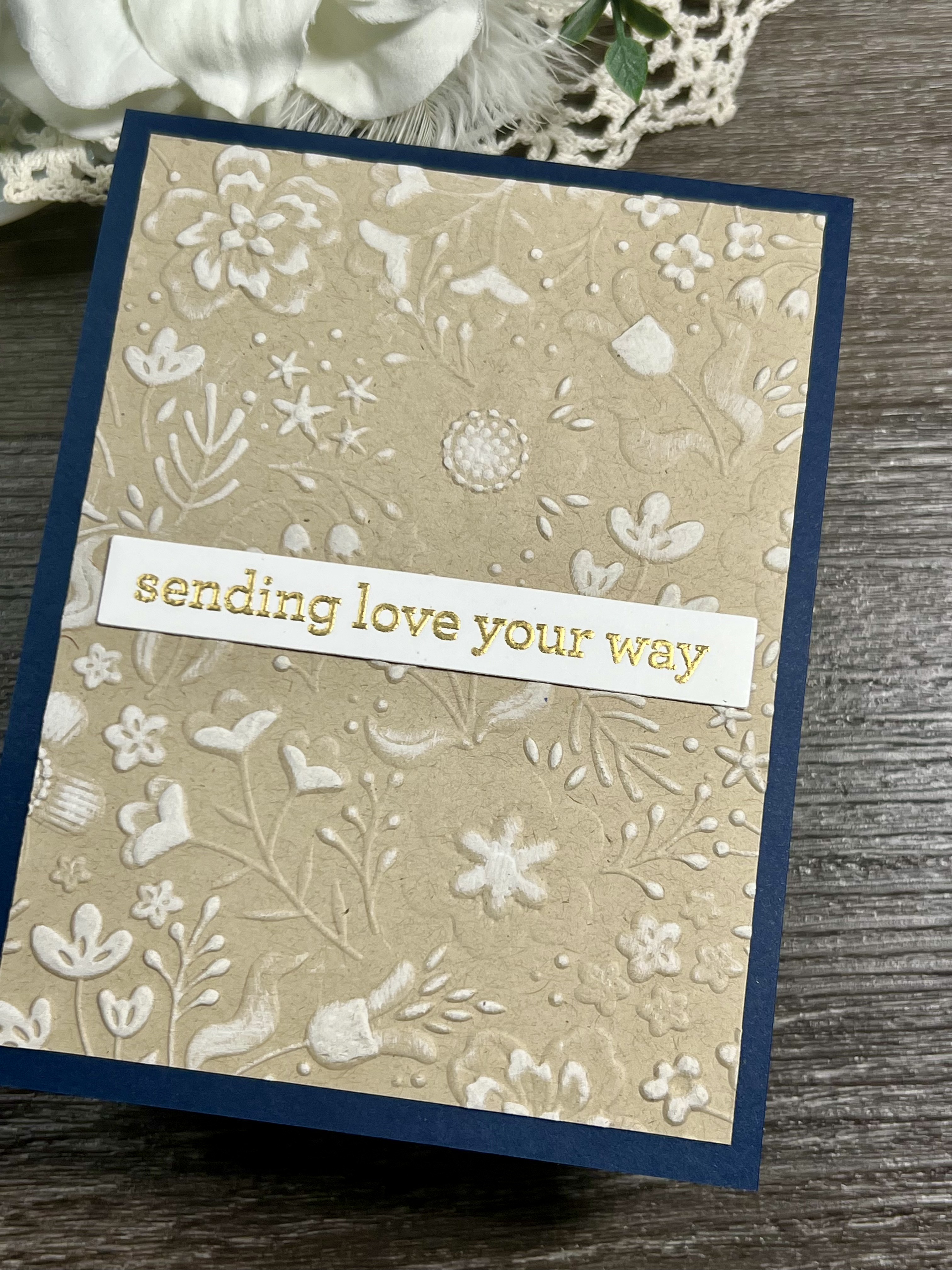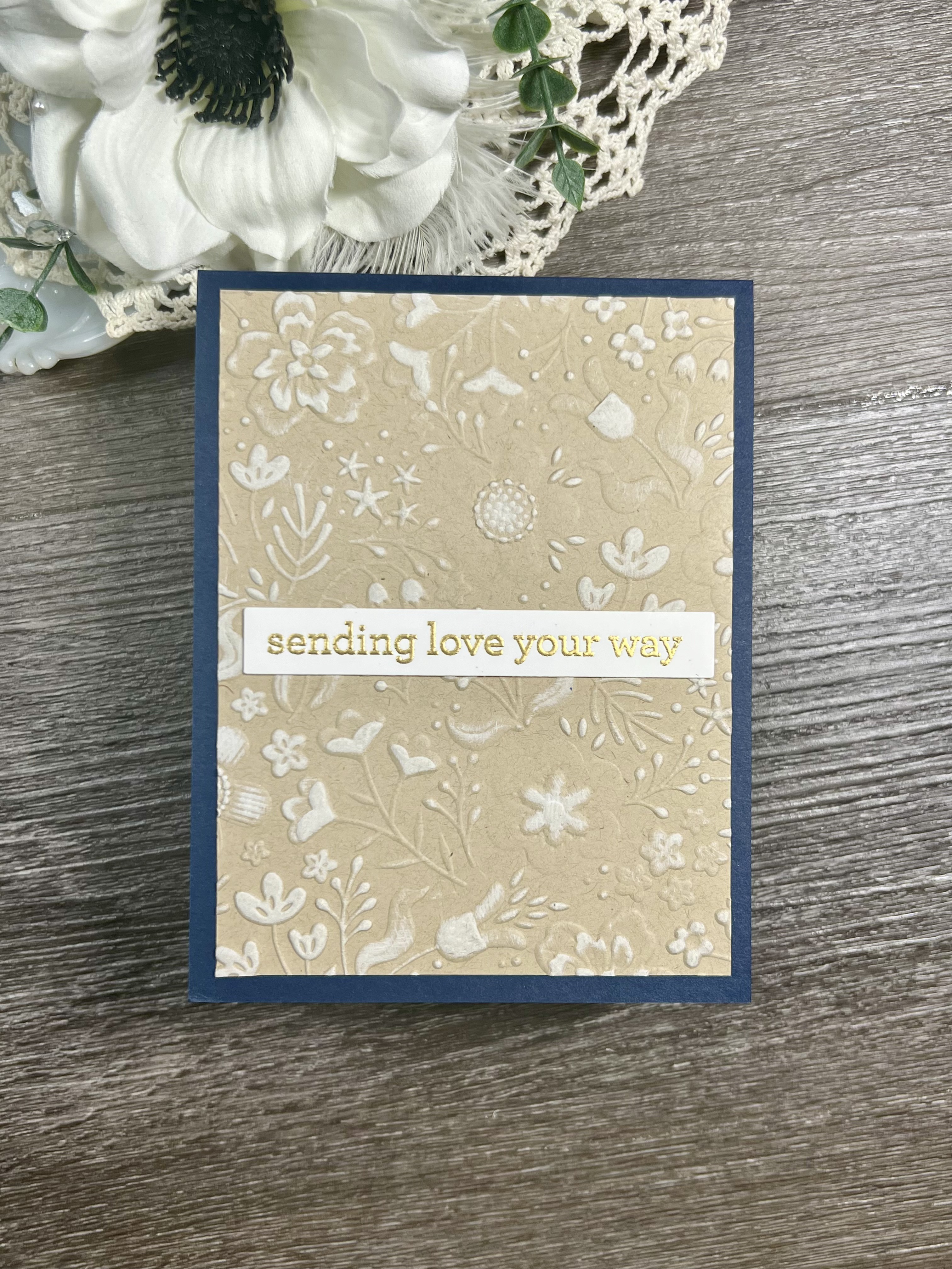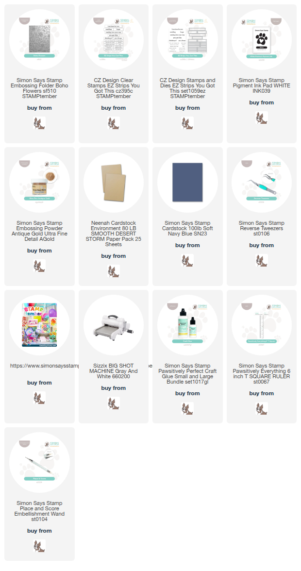 I made this card with the new release from Simon Says Stamp for STAMPtember 2025. Using the **Boho Flowers Embossing Folder, I ran a piece of Neenah Desert Storm 80lb cardstock through my die cutting machine in the folder.