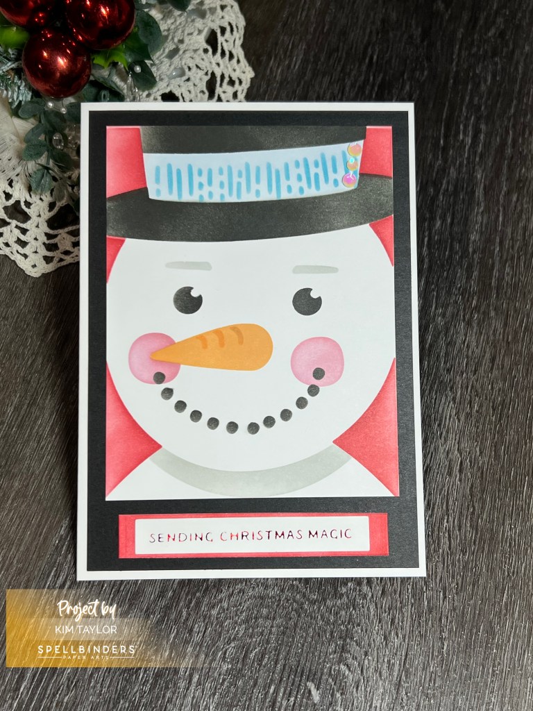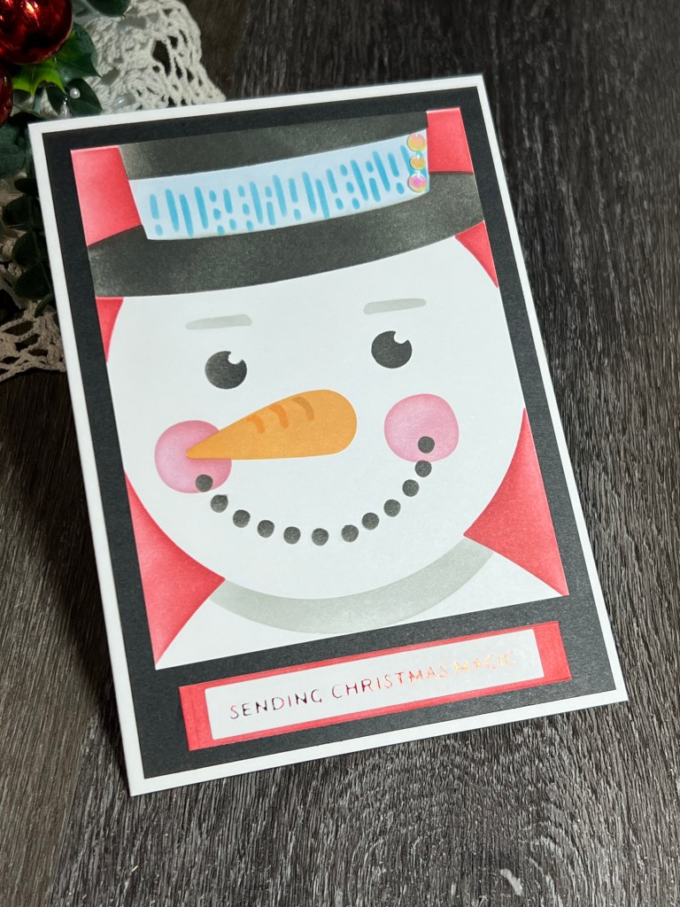 This adorable layered stencil makes creating cards so fun!! I used Hero Arts Inks for all 5 layers with a few iridescent sequins on the hat band for shine